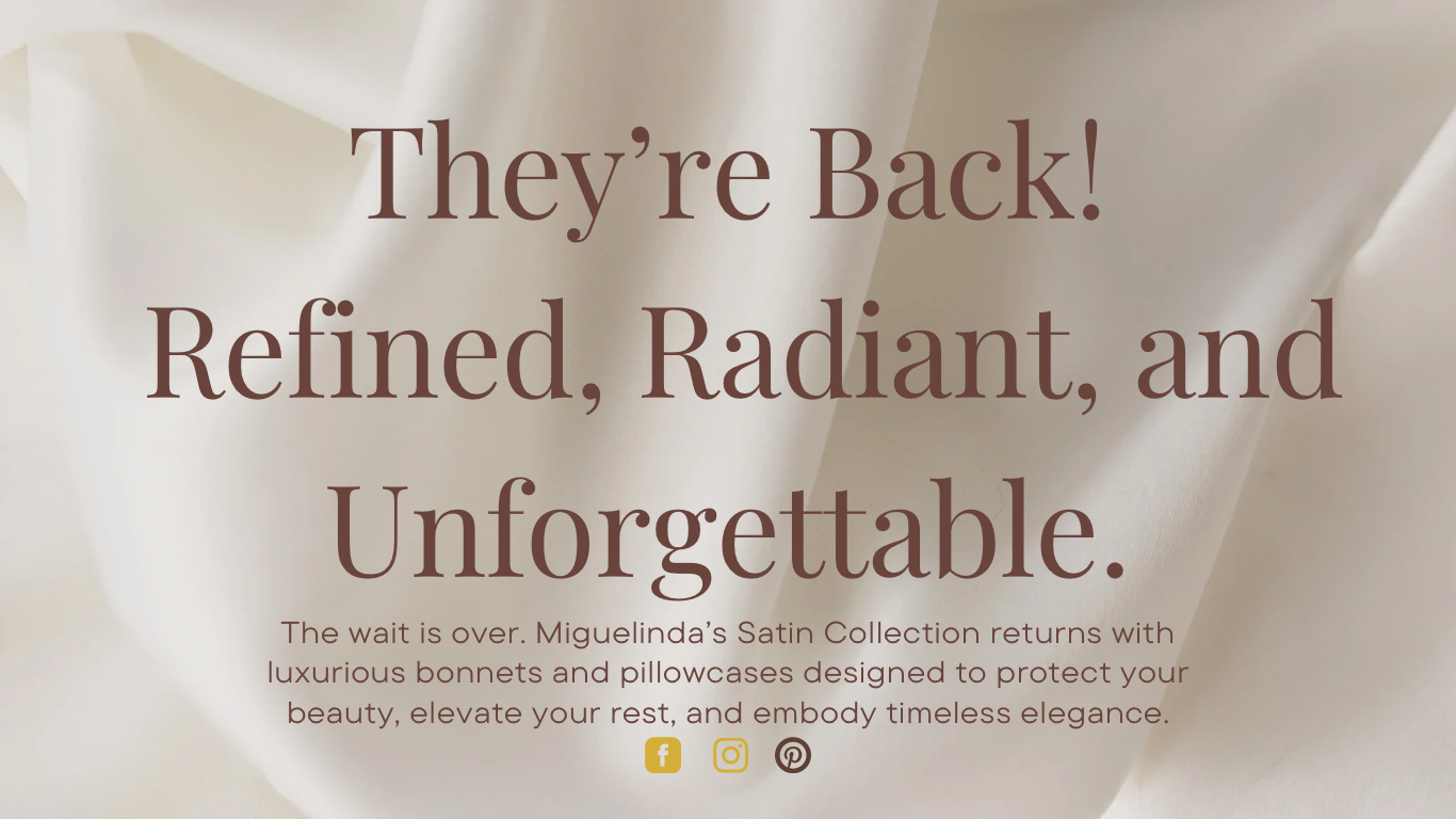 Miguelinda is a luxury beauty boutique committed to redefining self-care for the modern woman. We empower individuals through high-quality, thoughtfully designed beauty and lifestyle products that blend elegance, comfort, and purpose. From our satin bonnets and pillowcases to our expanding collections in beauty, wellness, and philanthropy, we celebrate inclusivity, culture, and confidence. At Miguelinda, beauty is more than appearance; it’s empowerment, restoration, and luxury made accessible to all.