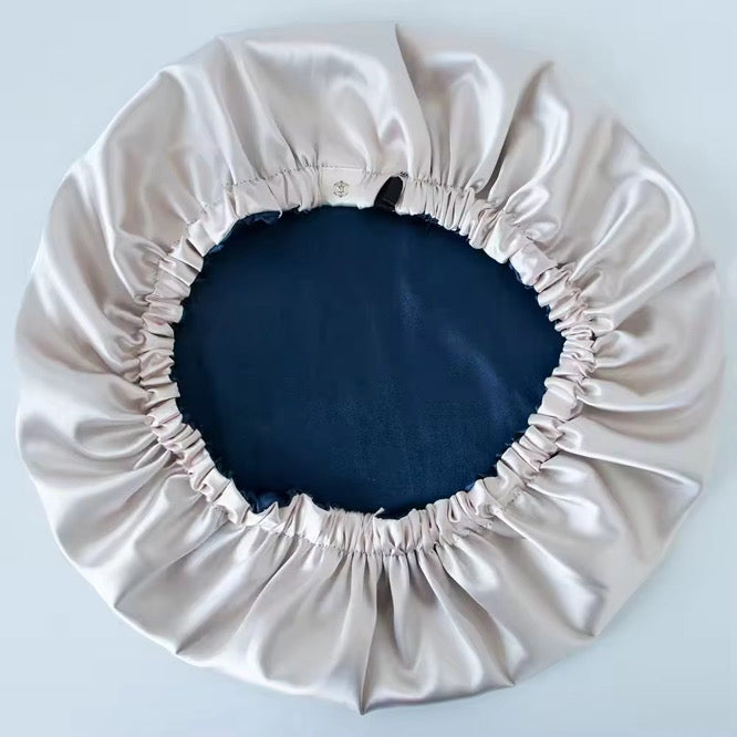 Wrap your crown in luxury every night with the Miguelinda Reversible Medium Satin Bonnet. Crafted with a breathable double-layer satin lining and made from 97% polyester and 3% spandex, this bonnet delivers supreme comfort and durability. Designed for curly, coily, and textured hair, it features an adjustable drawstring to fit all head sizes snugly; without tension. Its reversible two-tone design gives you two looks in one, making it a nighttime essential and a self-care statement.